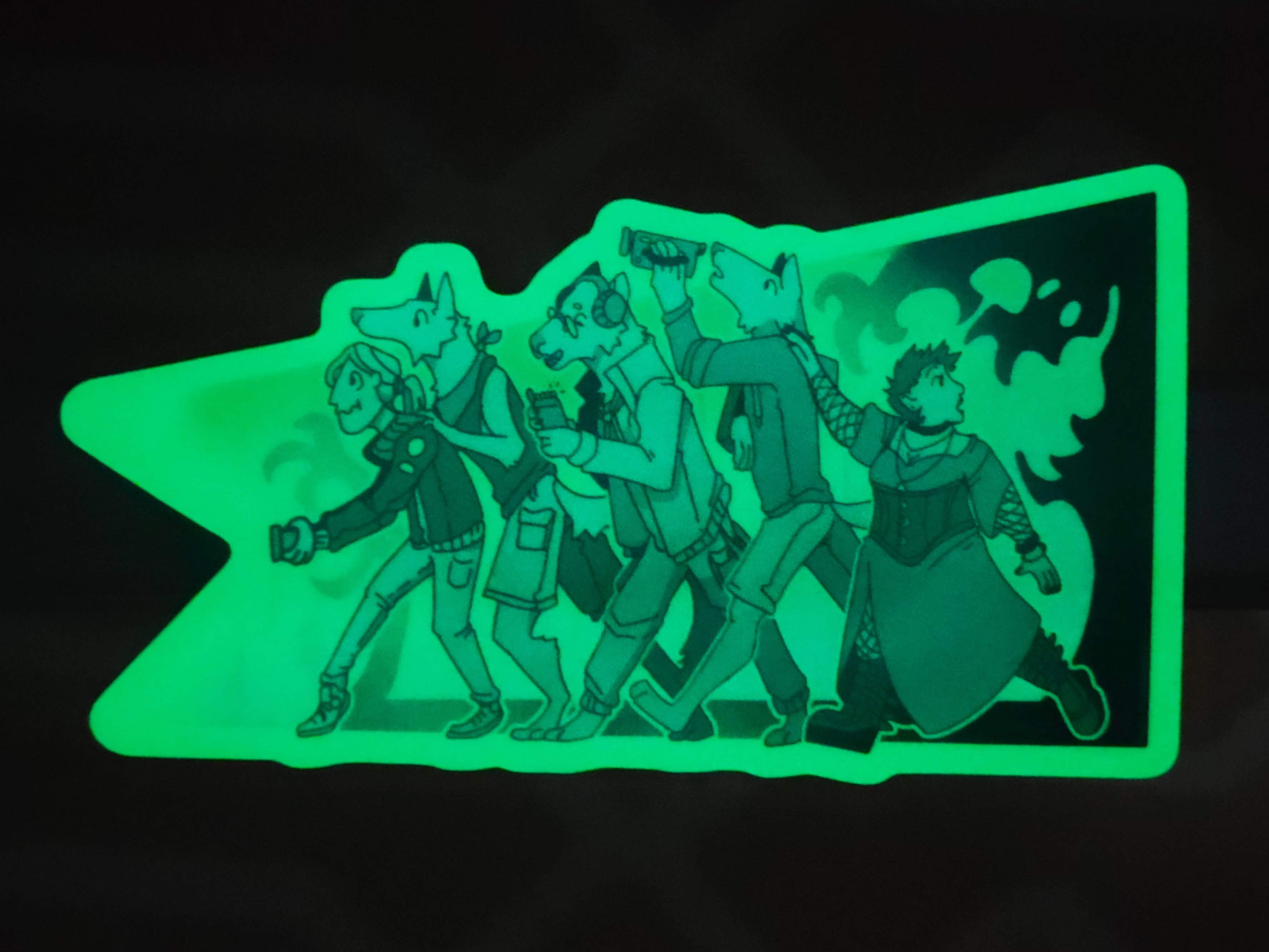 A limited edition glow-in-the-dark vinyl sticker that was made for Patreon's August Sticker Club!